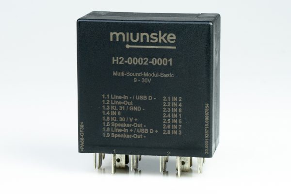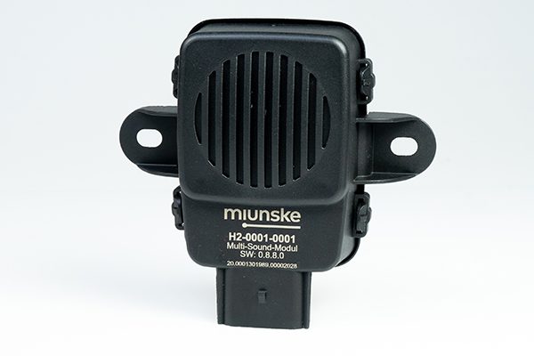 Mit dem Multi-Sound-Modul bietet miunske eine kompakte, robuste und vielseitig einsetzbare Lösung zur Soundwiedergabe in Fahrzeugen und ermöglicht die akkurate und situationsabhängige Ausgabe akustischer Signale sowie Sprachnachrichten. Acht Signale können aus einer Bibliothek von 80 Standardsounds in vier verschiedenen Lautstärken abgespielt werden. Weitaus mehr Möglichkeiten bietet die Variante mit CAN-Schnittstelle. Die Tonwiedergabe erfolgt modellabhängig in hoher Qualität über einen integrierten Lautsprecher oder einen extern anschließbaren Schallgeber. Dank CAN-Schnittstelle lässt sich das Modul problemlos in bestehende Bordnetzarchitekturen integrieren und flexibel ansteuern.