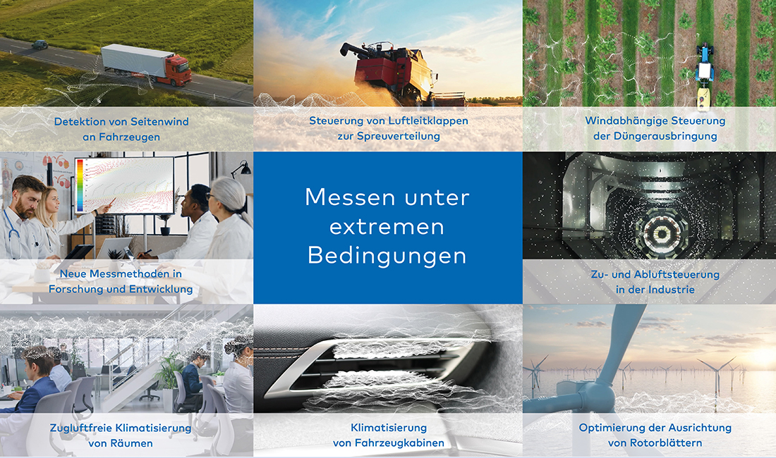Unter dem Leitgedanken „measuring under extremes“ wurde speediflow® speziell für präzise, robuste und zuverlässige Messungen unter extremen Umweltbedingungen konzipiert. Damit eröffnet er völlig neue Einsatzmöglichkeiten – etwa in der Agrarsystemtechnik, Umwelttechnik, Lüftungs- und Klimatechnik sowie in der Wind- und Energietechnik.