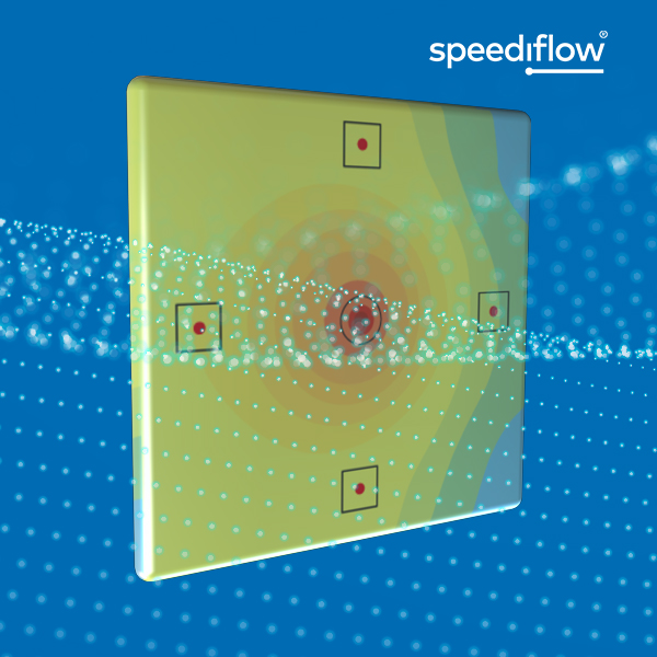 Auf Basis der Temperaturverteilung auf der Oberfläche einer kleinen keramischen Platte wird erstmals die nicht-invasive Messung des Strömungsvektors möglich. Der Sensor wird wandbündig über Außenwände oder über speziell gestaltete Trägergehäuse in die Strömung eingebracht. Deshalb kann die Messung völlig problemlos in partikelbeladenen Strömungen erfolgen. Dies gilt auch für Messungen in Stoffströmen. Aufgrund der eingeschränkten Verfügbarkeit von Strömungsrichtungsmesstechnik wird bislang häufig nur die Strömungsgeschwindigkeit gemessen, was einerseits zu Fehlinterpretationen führen kann und andererseits die Anwendbarkeit für Regelkreise und Automation deutlich einschränkt. speediflow® liefert den Strömungsvektor und ermöglich damit schlussendlich die vollständige Beschreibung des Strömungsfeldes. Das macht ihn zu einem wichtigen und völlig neuartigen Werkzeug im Bereich FuE sowie zu einem essentiellen Sensor für die Regelung von Strömungsgrößen, beispielsweise in Erntemaschinen.